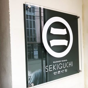 アクリル板にカッティングシートやインクジェット出力をした白色塩ビシートを貼り付けて作成する看板用のプレートです。