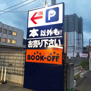箱状の看板内部にLEDを仕込んで夜の視認性を高めます。形は様々な加工が出来て文字の形に加工して光らせたり、正面発光、背面発光同時発光も対応しております。お店に合わせたご提案を致します。